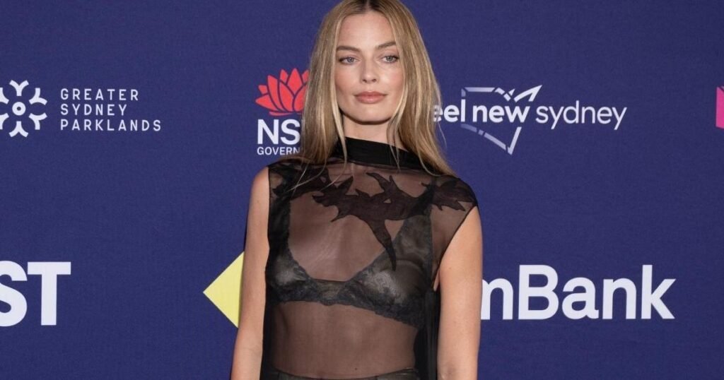 Margot Robbie’s completely transparent Chanel skirt paired with a handbag